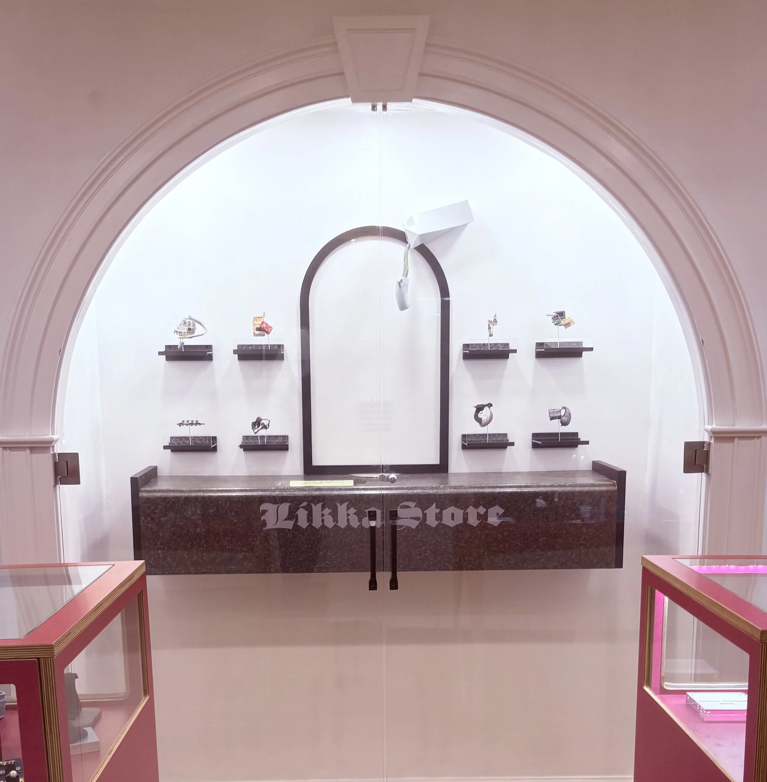 Likka Store is an exhibition of eight brooches and two sculptures. All of the work incorporates both traditional jewelry-making techniques alongside technological components such as sound and video.
